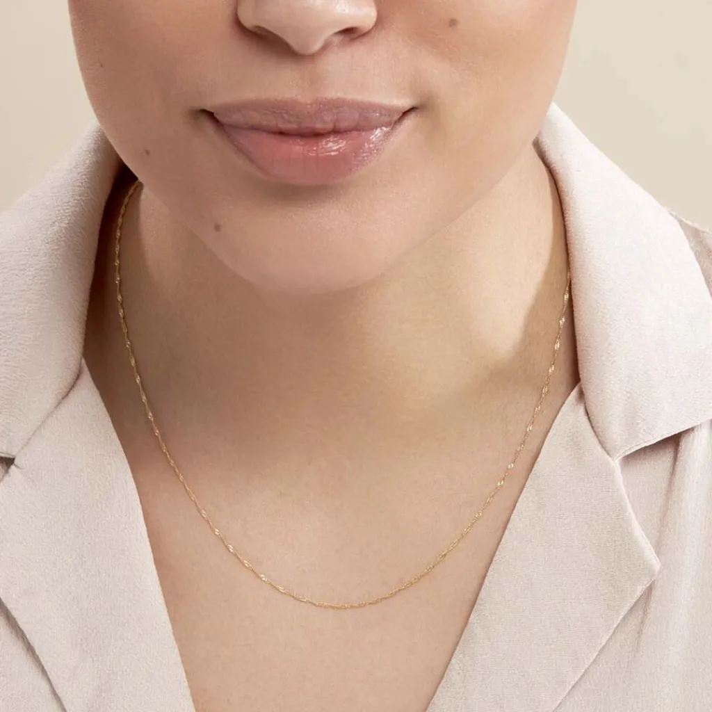 Collier Or Jaune 375/1000 Maille Singapour 0.9mm 42cm