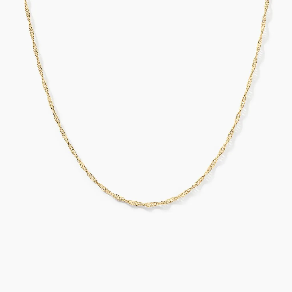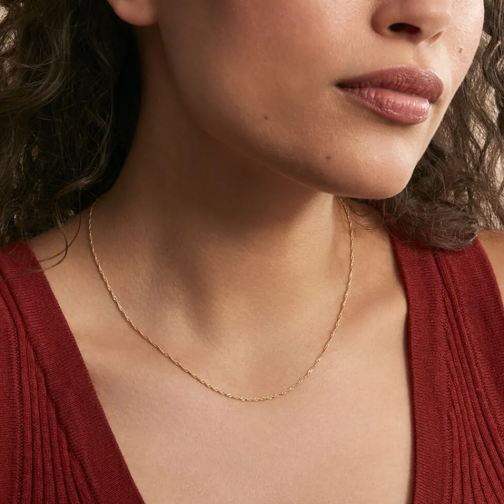 Collier Or Jaune 375/1000 Maille Singapour Evidée 1.2mm 42cm