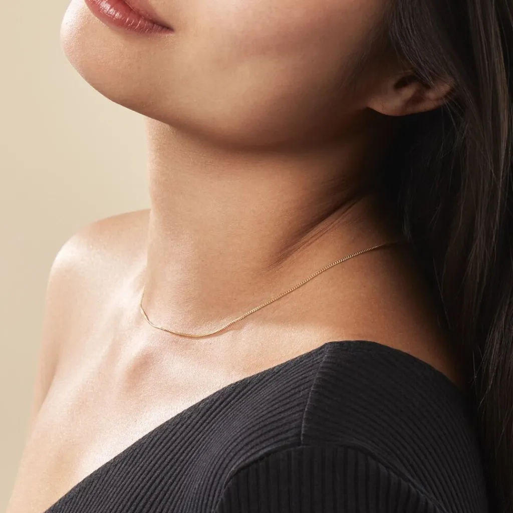 Chaine Or Jaune 375/1000 Maille Gourmette Diamantée 1.1mm 45cm