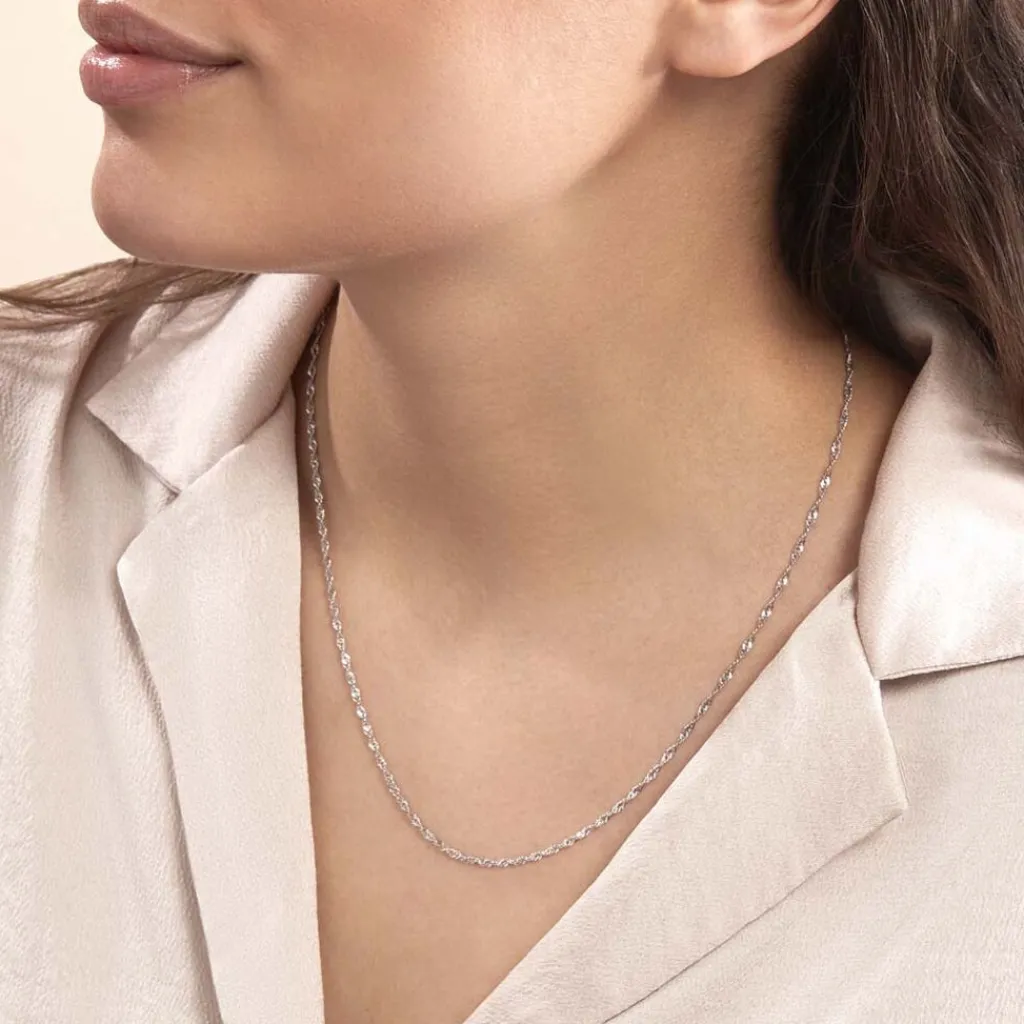 Chaîne Argent Blanc 925/1000 Maille Singapour Largeur 1mm 45cm