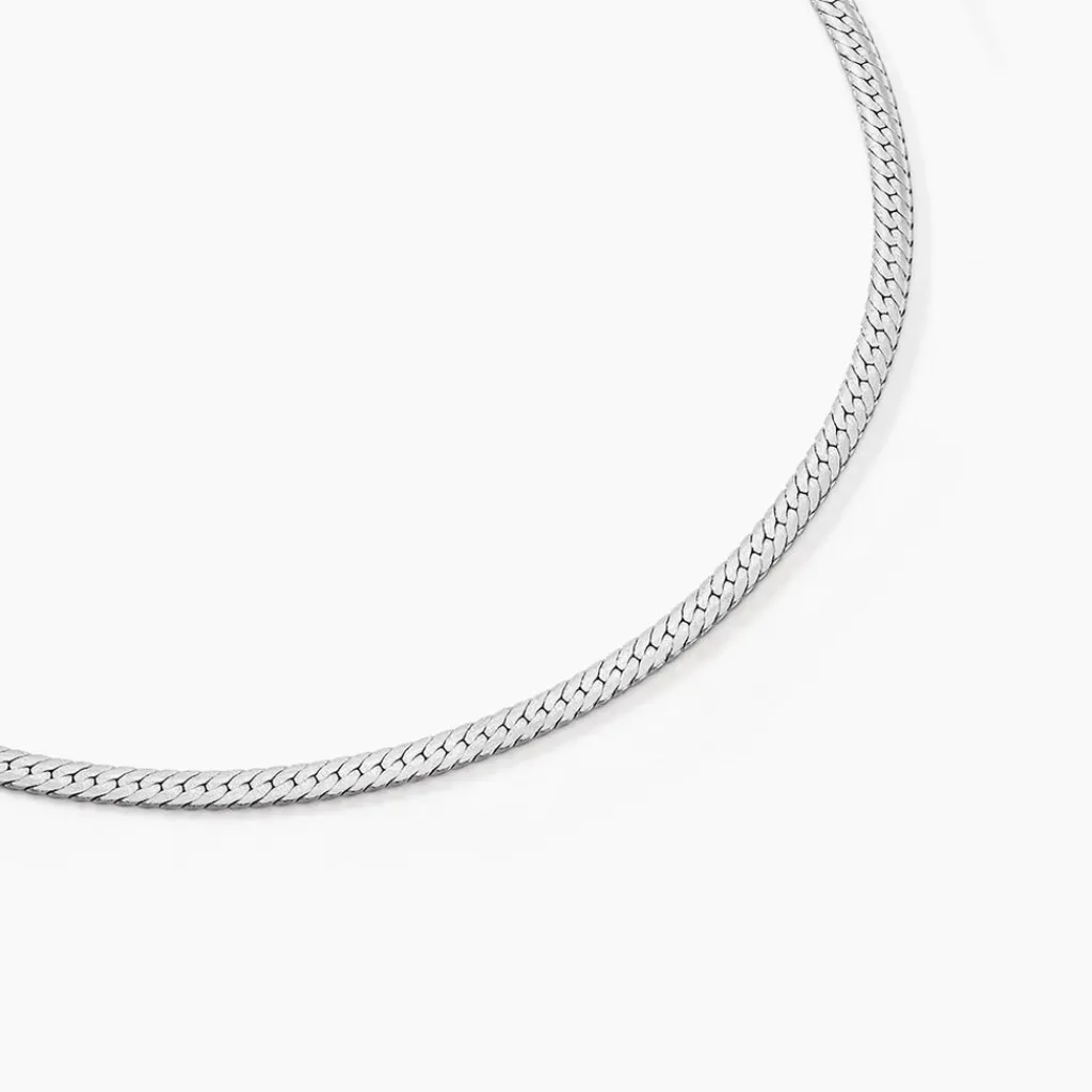 Chaîne Argent Blanc 925/1000 Maille Herringbone Effet Diamanté Largeur 3mm 45cm