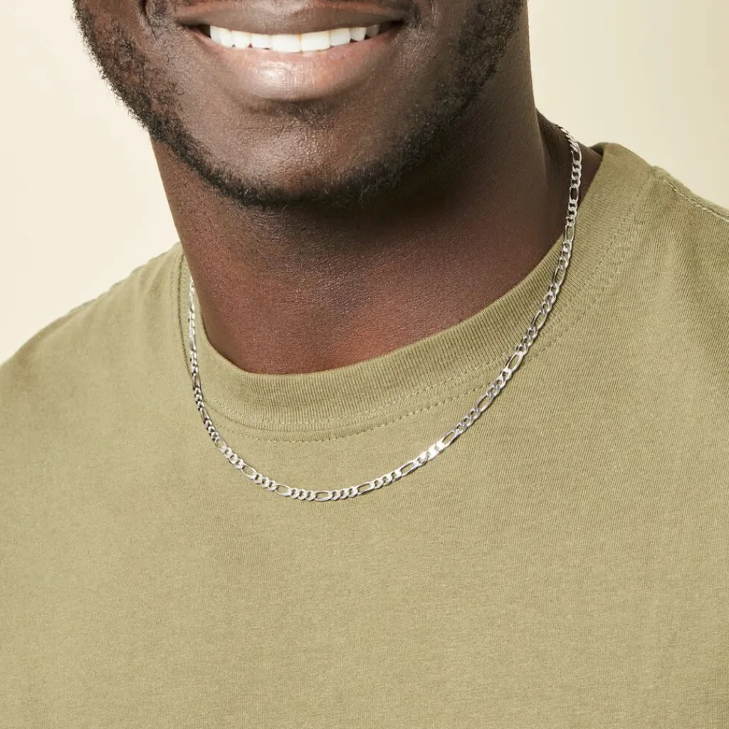 Collier Argent Blanc 925/1000 Maille Alternee 1/3 Epaisseur 3.8mm 50cm