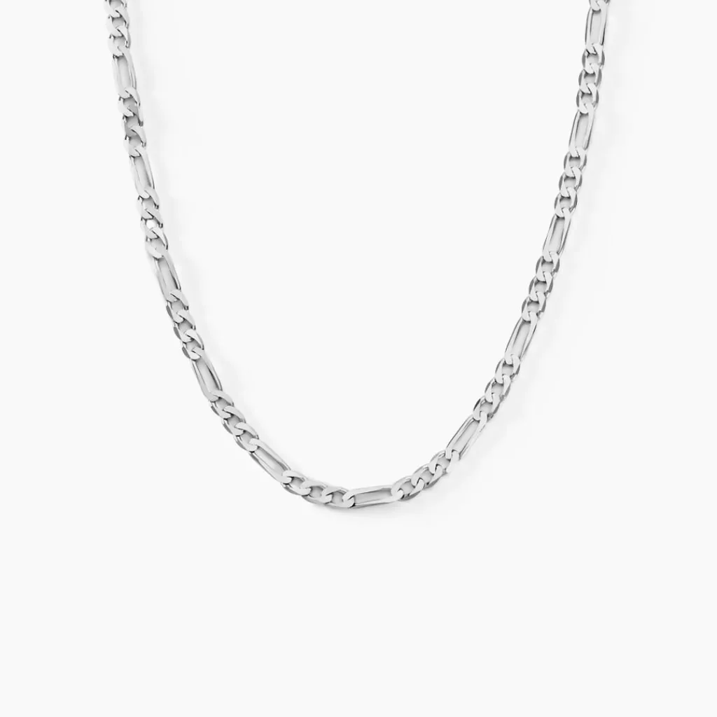 Collier Argent Blanc 925/1000 Maille Alternee 1/3 Epaisseur 3mm 50cm