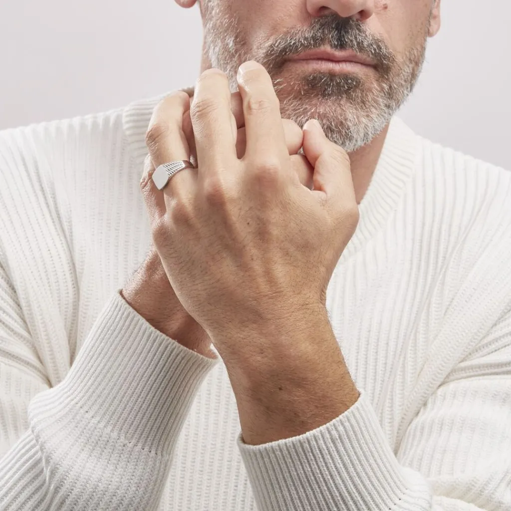 Chevalière Argent Blanc 925/1000 Rectangle Lisse Corps De Bague Travaille