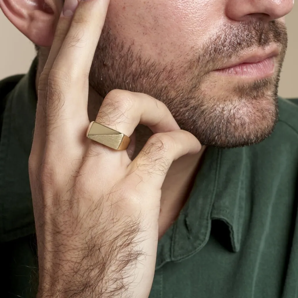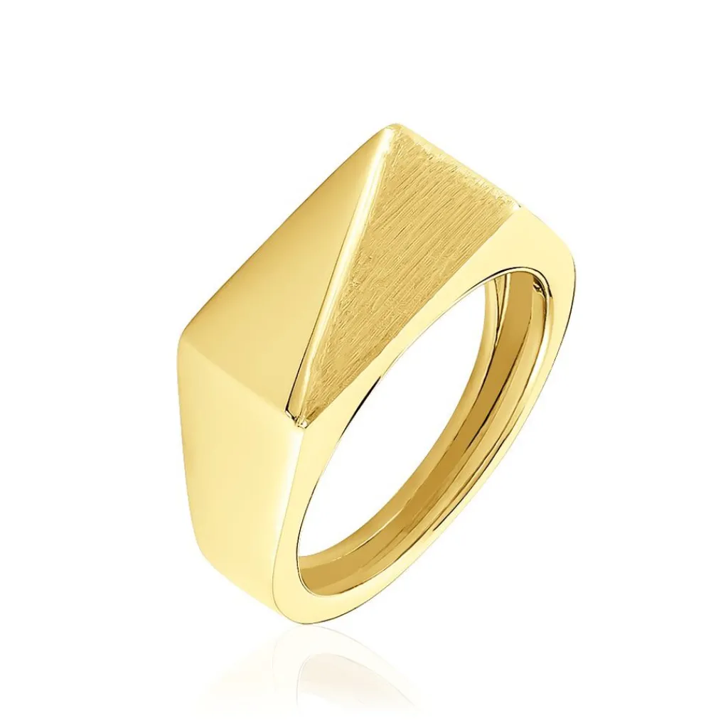 Chevaliere Or Jaune 375/1000 Rectangle Effet Mat Et Brillant