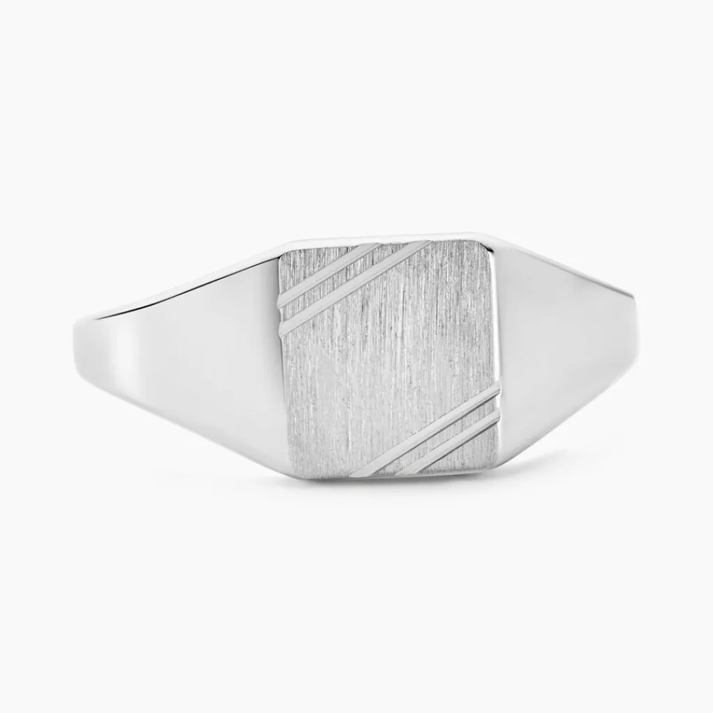 Chevaliere Argent Blanc 925/1000 Plateau Carre Cisele Pm