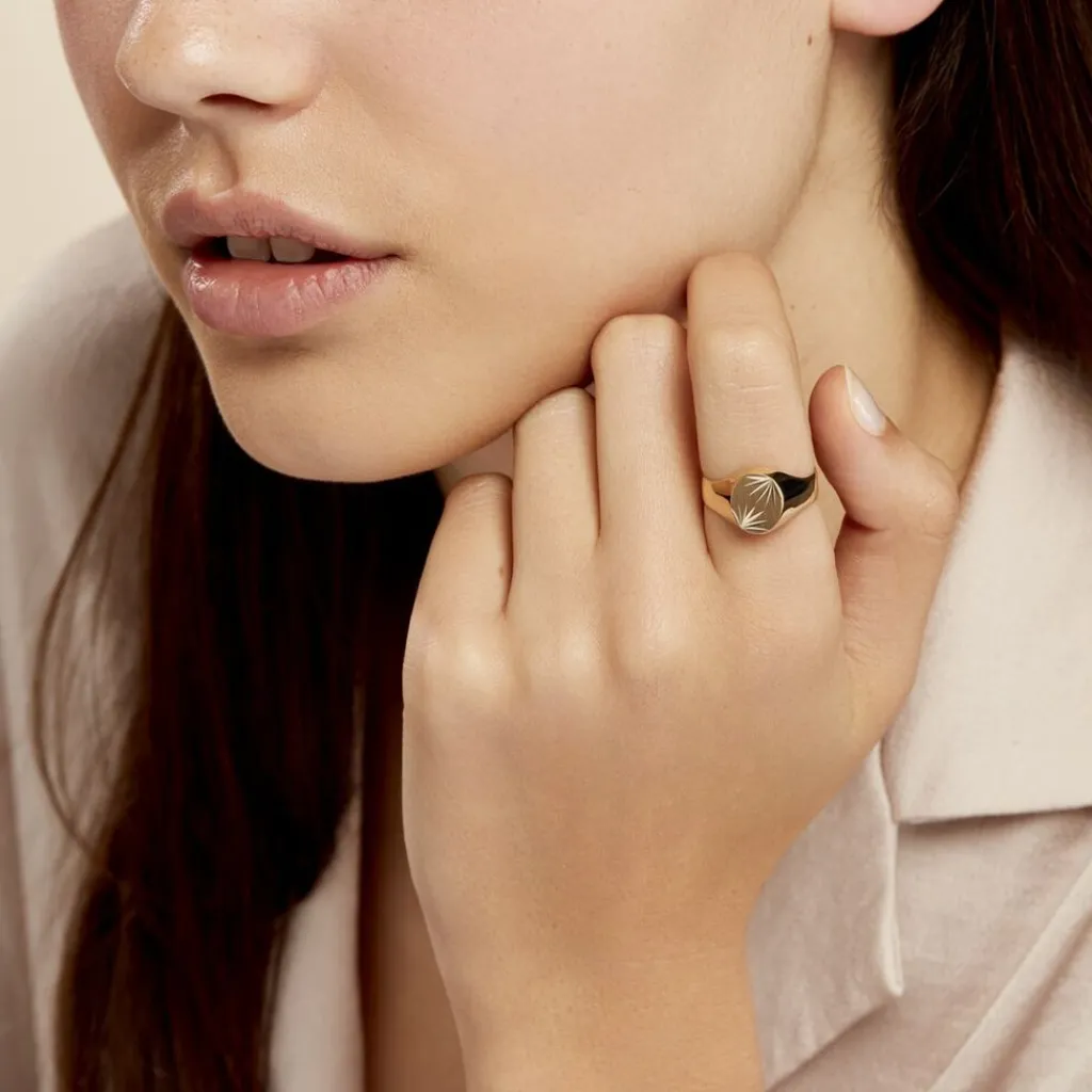 Chevelière Or Jaune 375/1000 Plateau Ovale Brossé Deux Soleils
