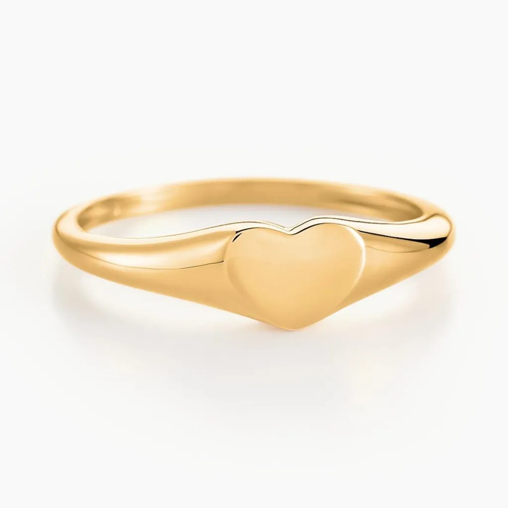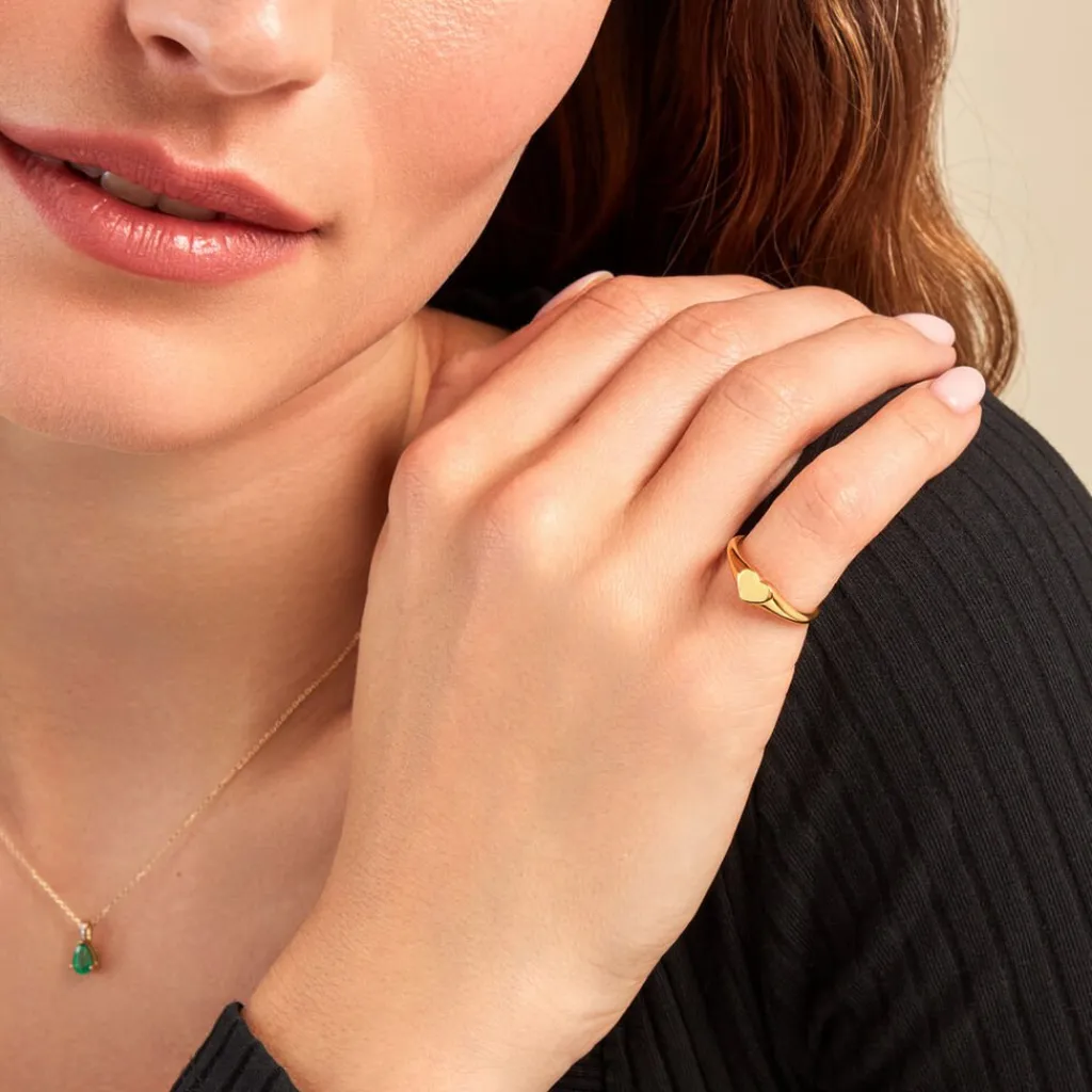 Chevalière Or Jaune 375/1000 Plateau C艙ur Lisse