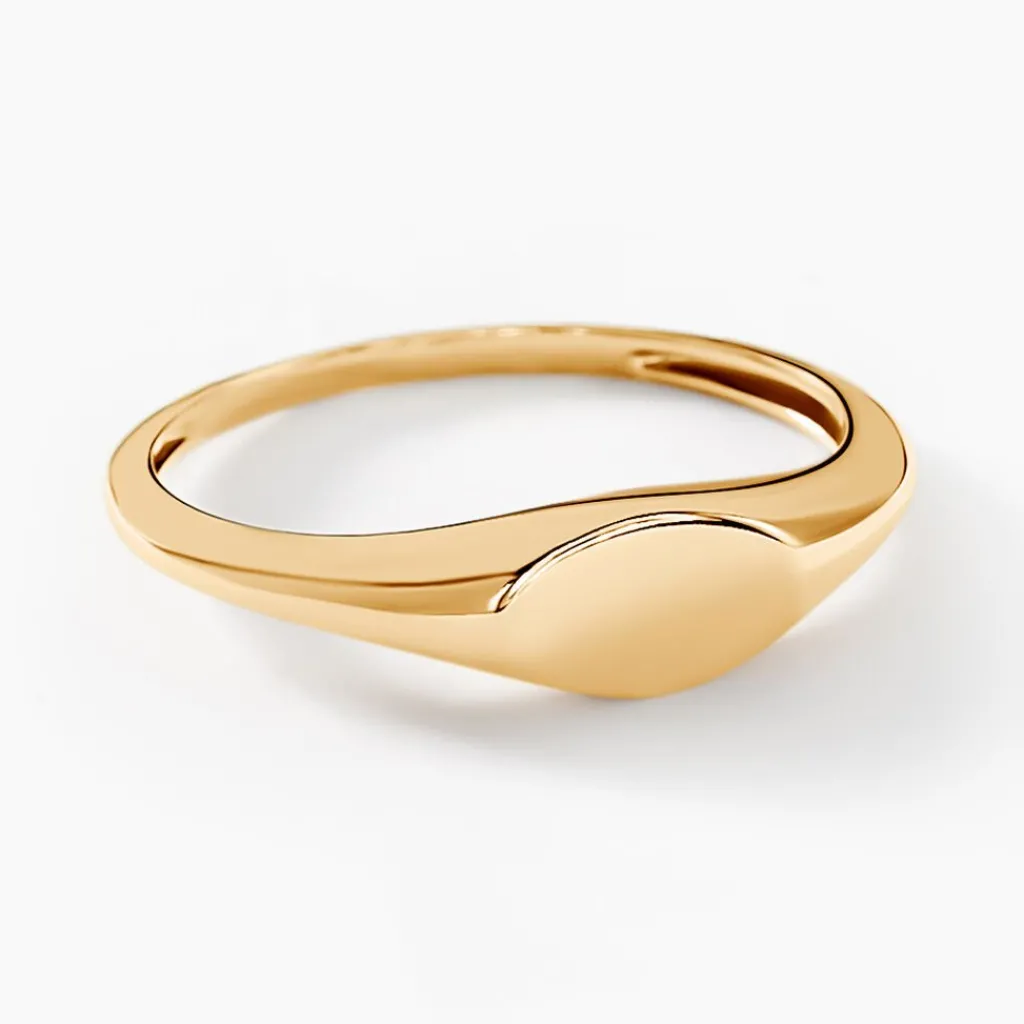 Chevalière Or Jaune 375/1000 Plateau Oval Lisse