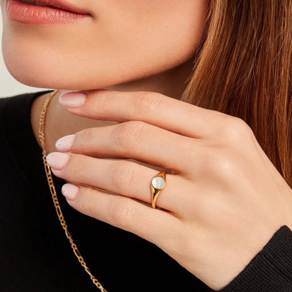 Chevalière Or Jaune 375/1000 Plateau Rond Nacre