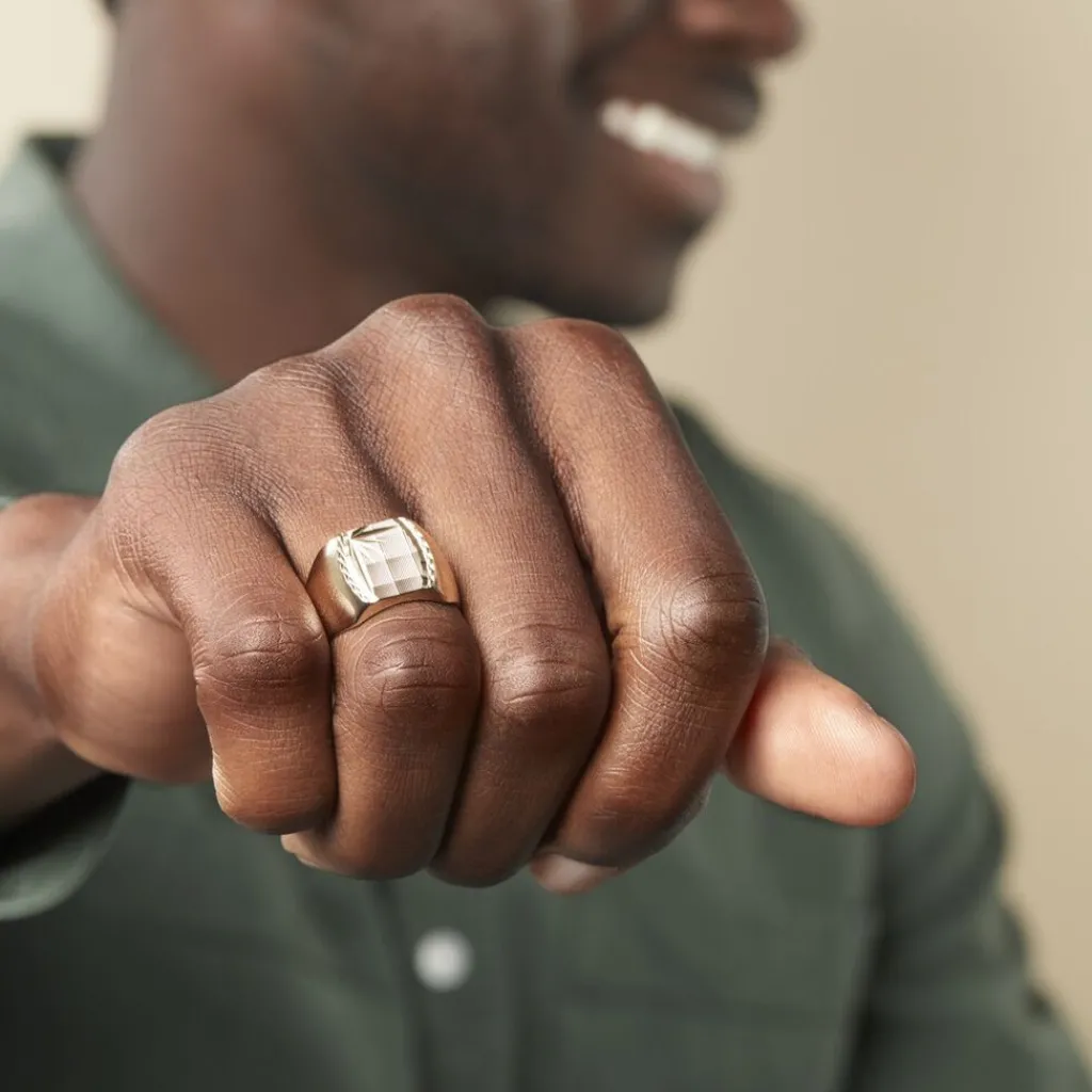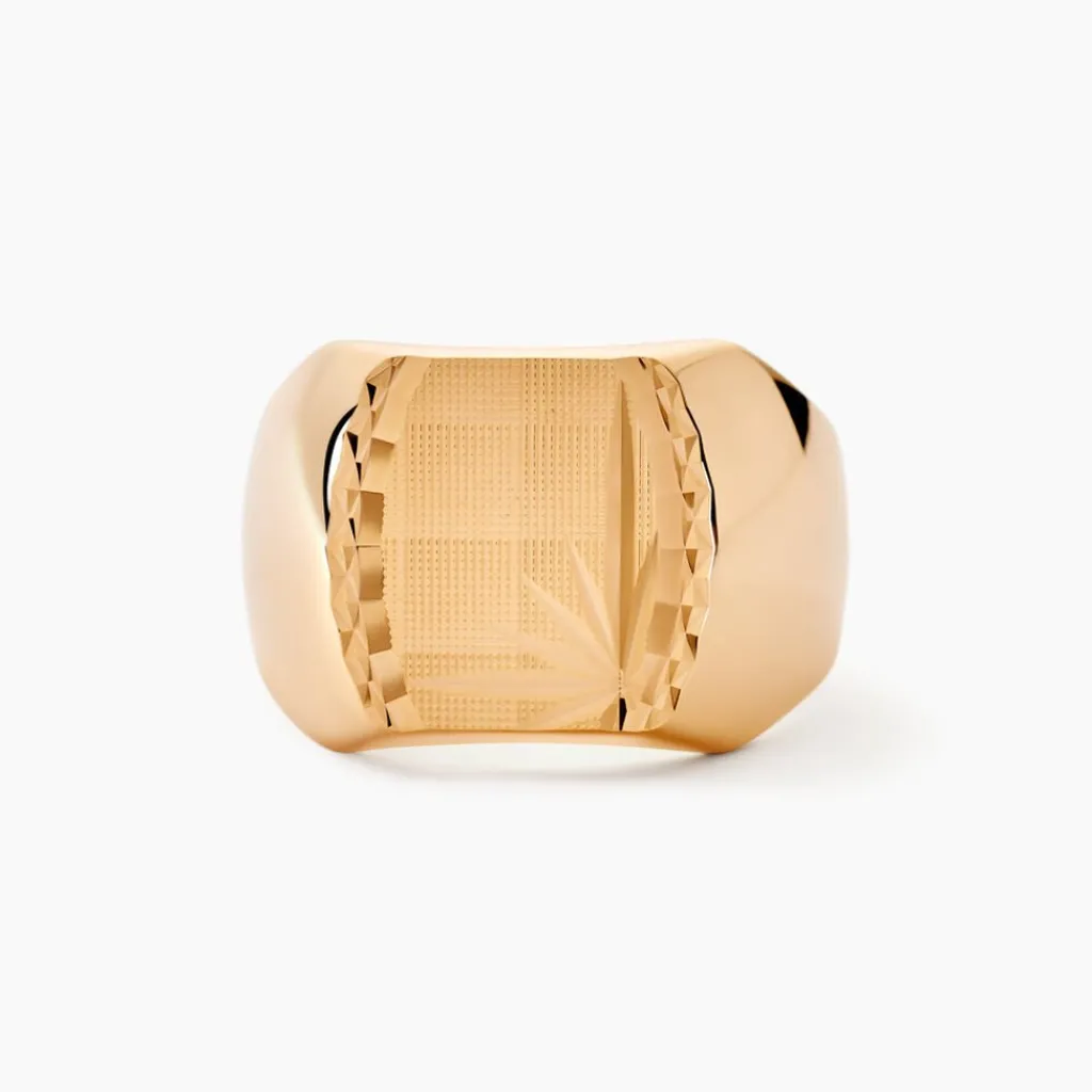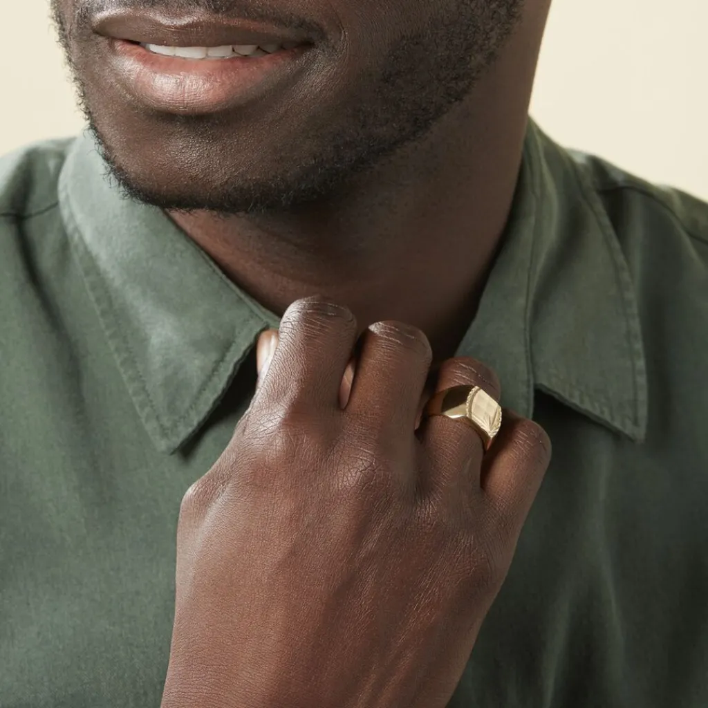 Chevaliere Plaqué Or Jaune Plateau Carre Cisele