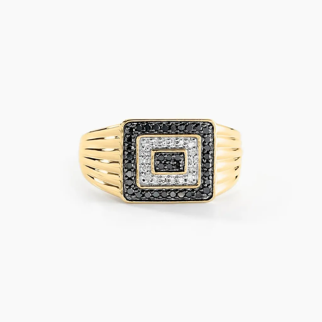 Chevaliere Or Jaune 375/1000 Motif Rectangle Pavage Diamants Noirs 0.27cts