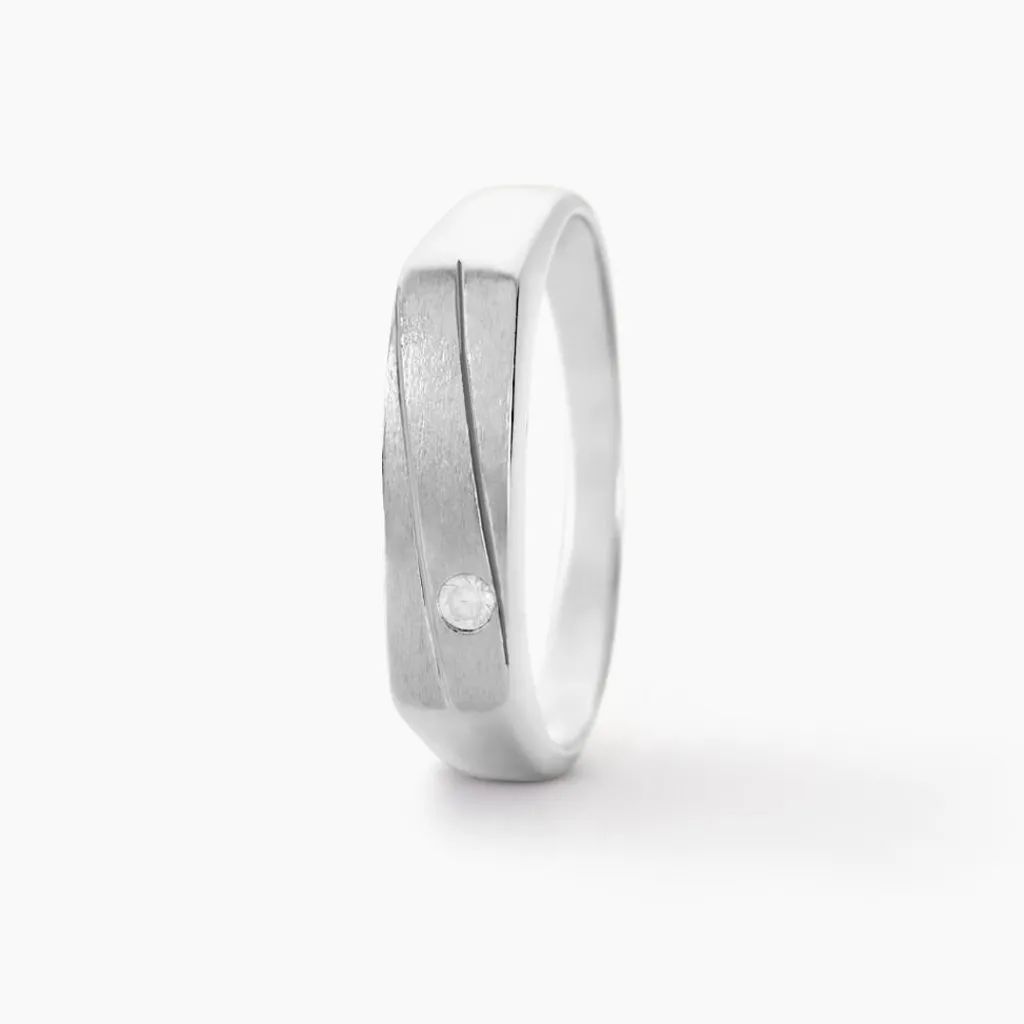 Chevaliere Argent Blanc 925/1000 Plateau Rectangle Oxyde De Zirconium