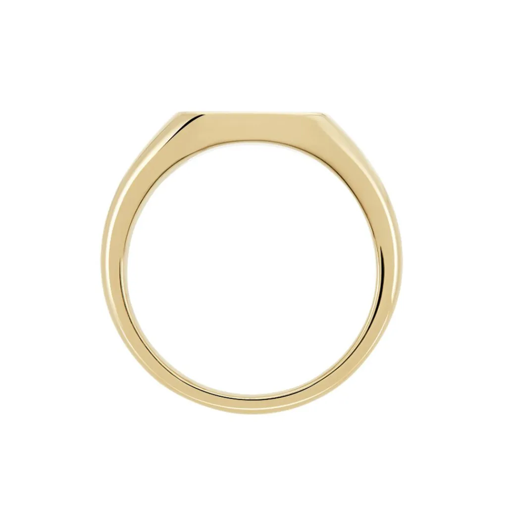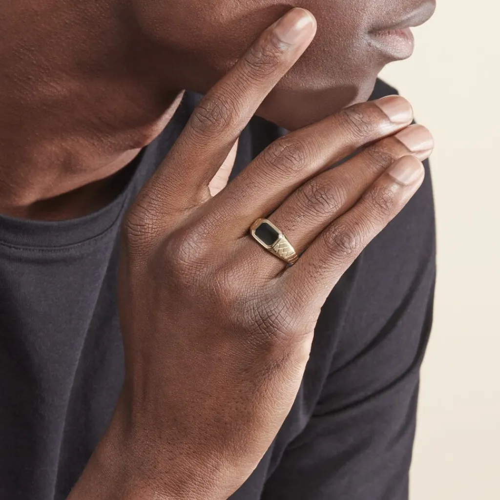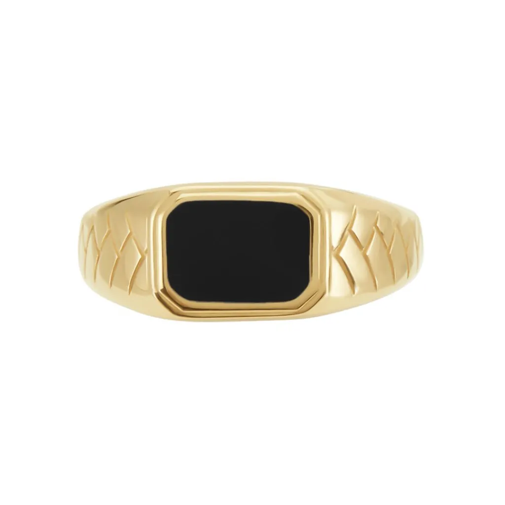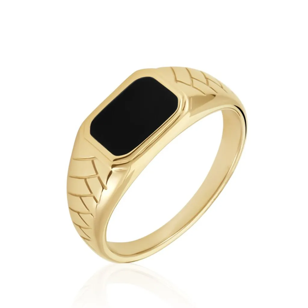 Chevalière Plaqué Or Jaune Carré Email Noir Corps De Bague Chevrons
