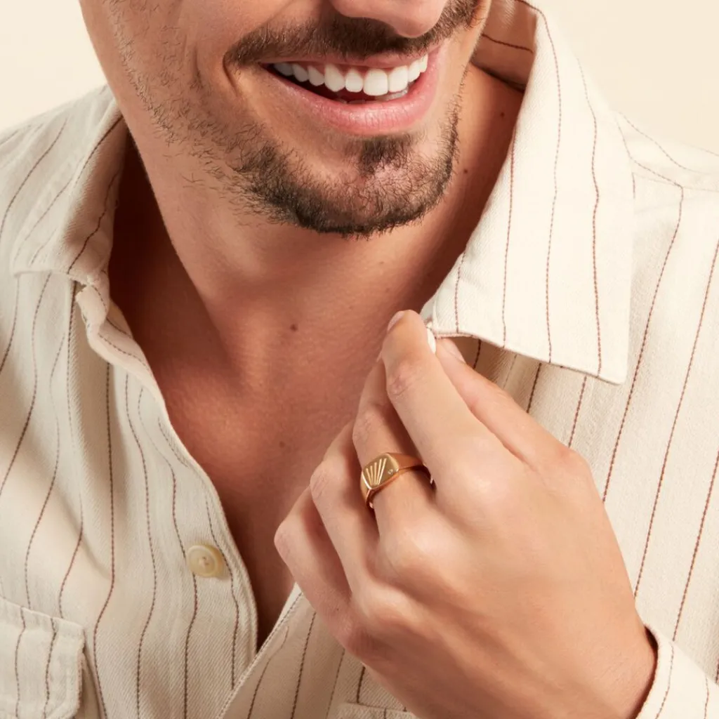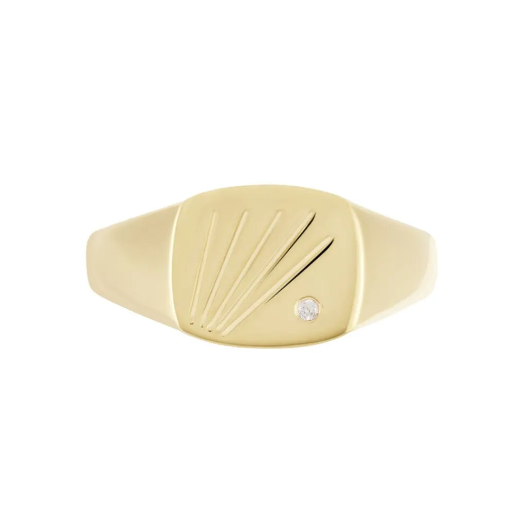 Chevaliere Plaque Or Jaune Plateau Rectangle Effet Strie Oxyde De Zirconium