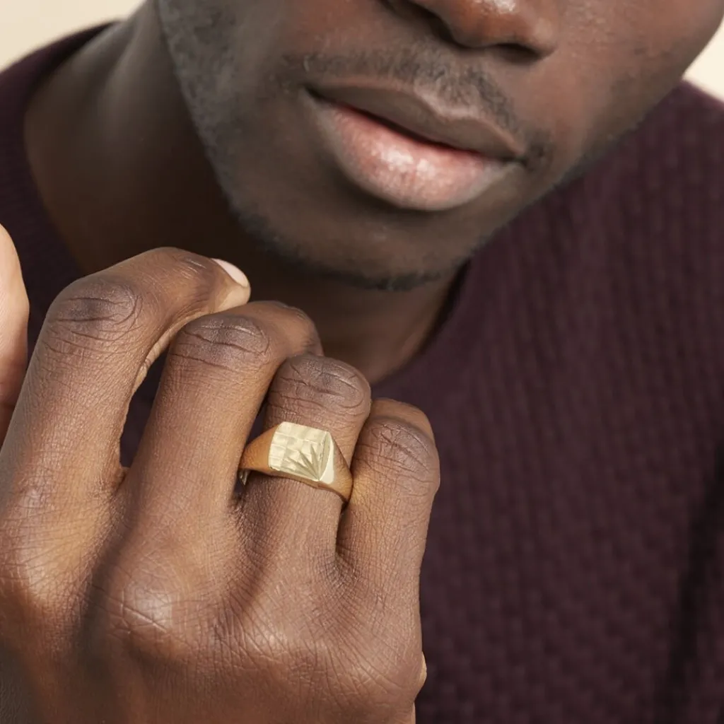 Chevaliere Plaqué Or Jaune Plateau Carre Grand Damier Soleil
