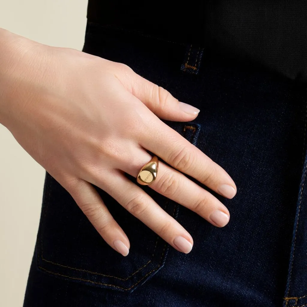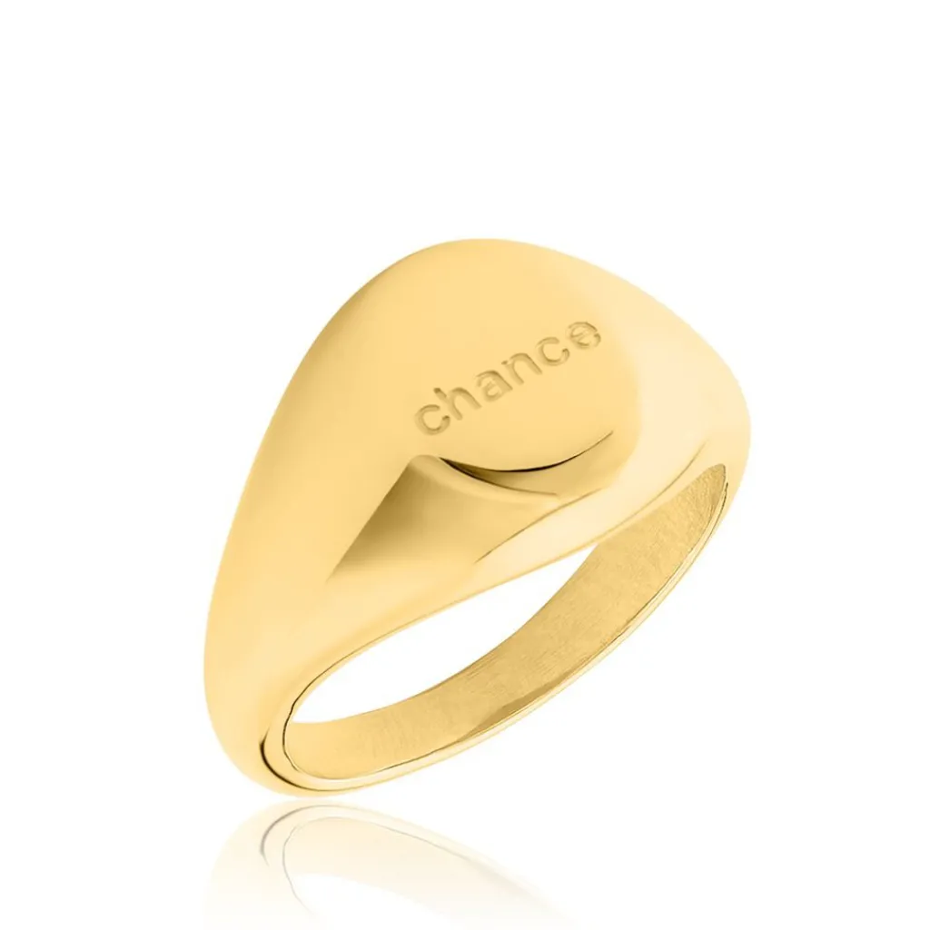 Chevalière Acier Inoxydable Jaune Plateau Ovale