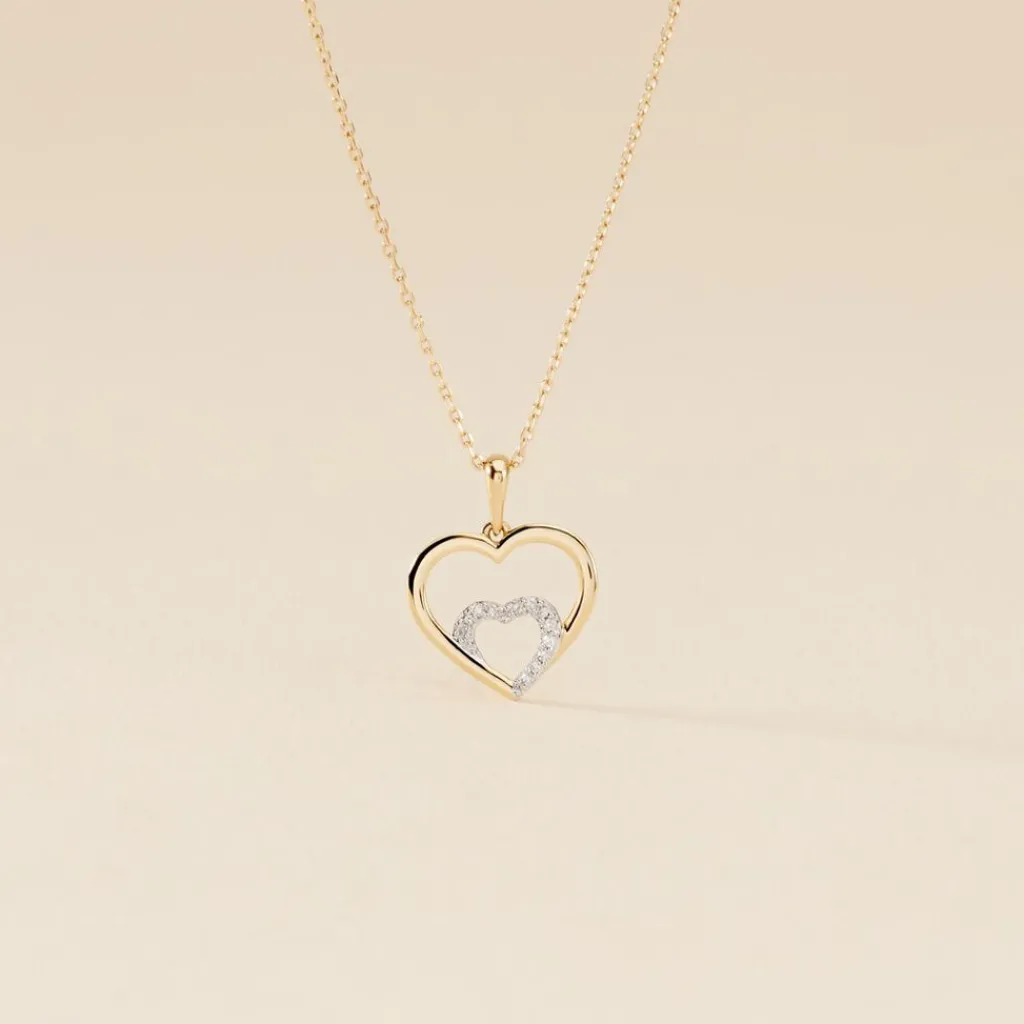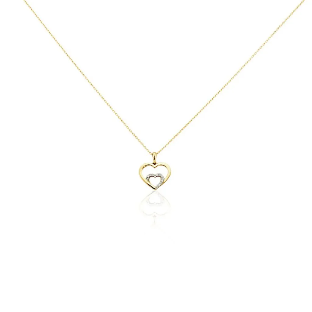 Collier Or Jaune 375/1000 Forme C艙ur Diamants 40+2cm