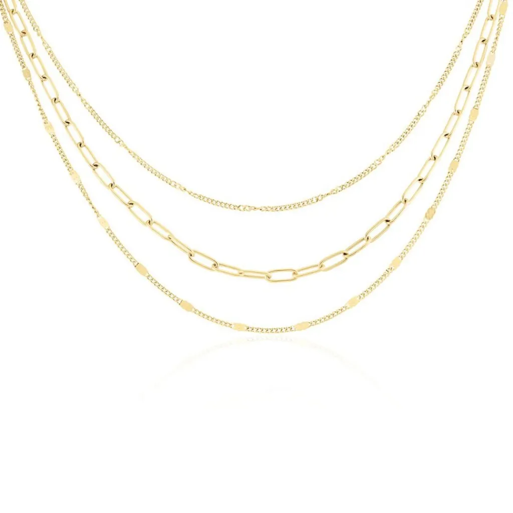 Collier Acier Inoxydable Jaune Triple Chaines Fantaisies 41cm