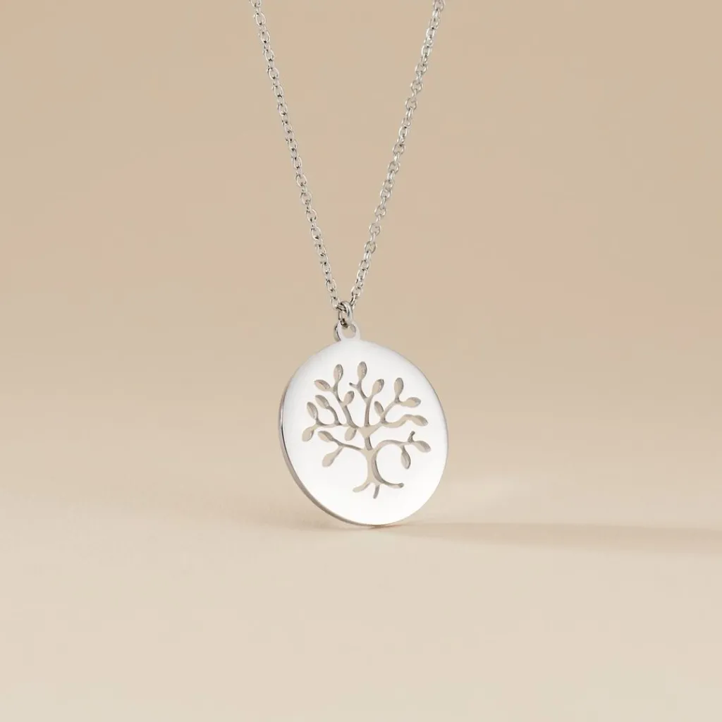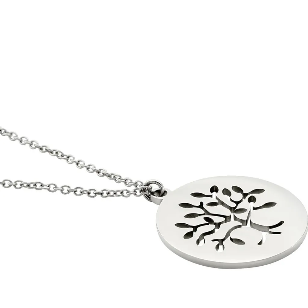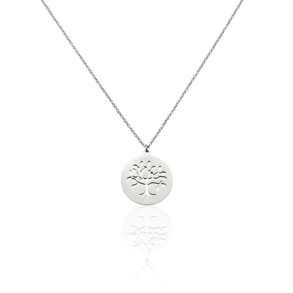 Collier Acier Blanc Pendentif Arbre De Vie Maille Forçat 70cm
