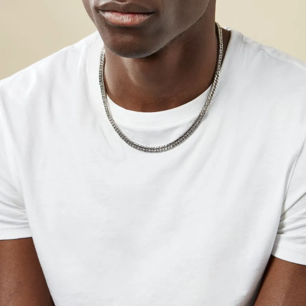 Collier Acier Inoxydable Blanc Maille Gourmette Largeur 6.1mm 50cm