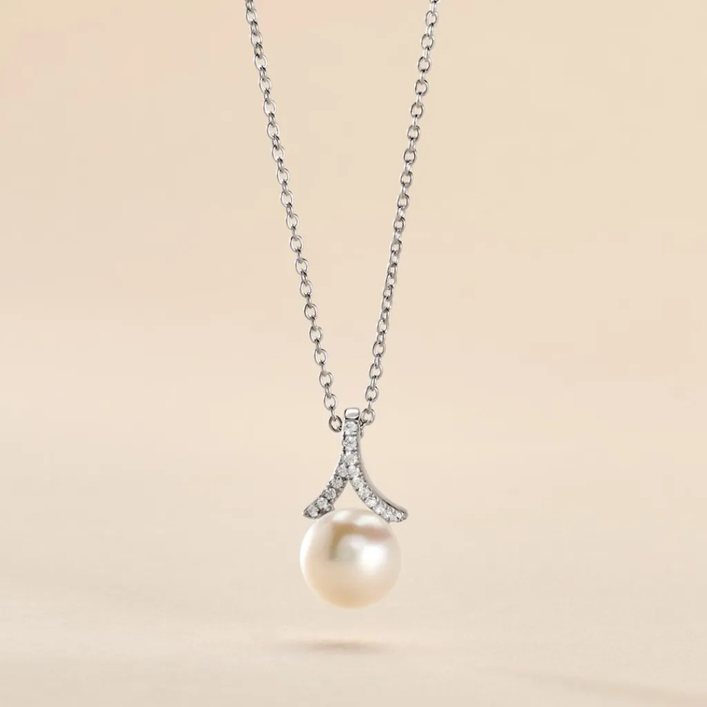 Collier Argent Blanc 925/1000 Perle De Culture 8.5-9mm Et Oxydes De Zirconium 45cm