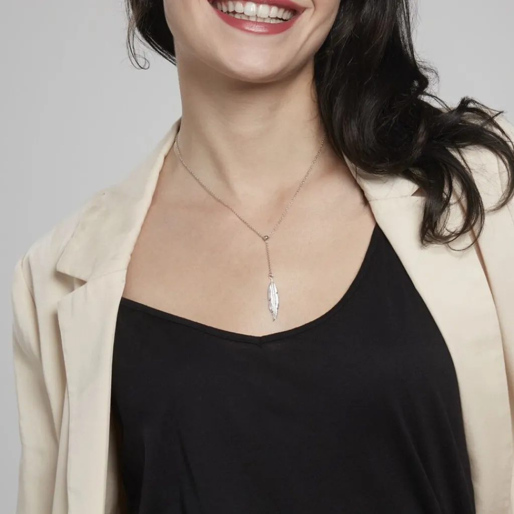 Collier Argent Blanc 925/1000 Forme Cravate Plume Maille Forcat 45cm