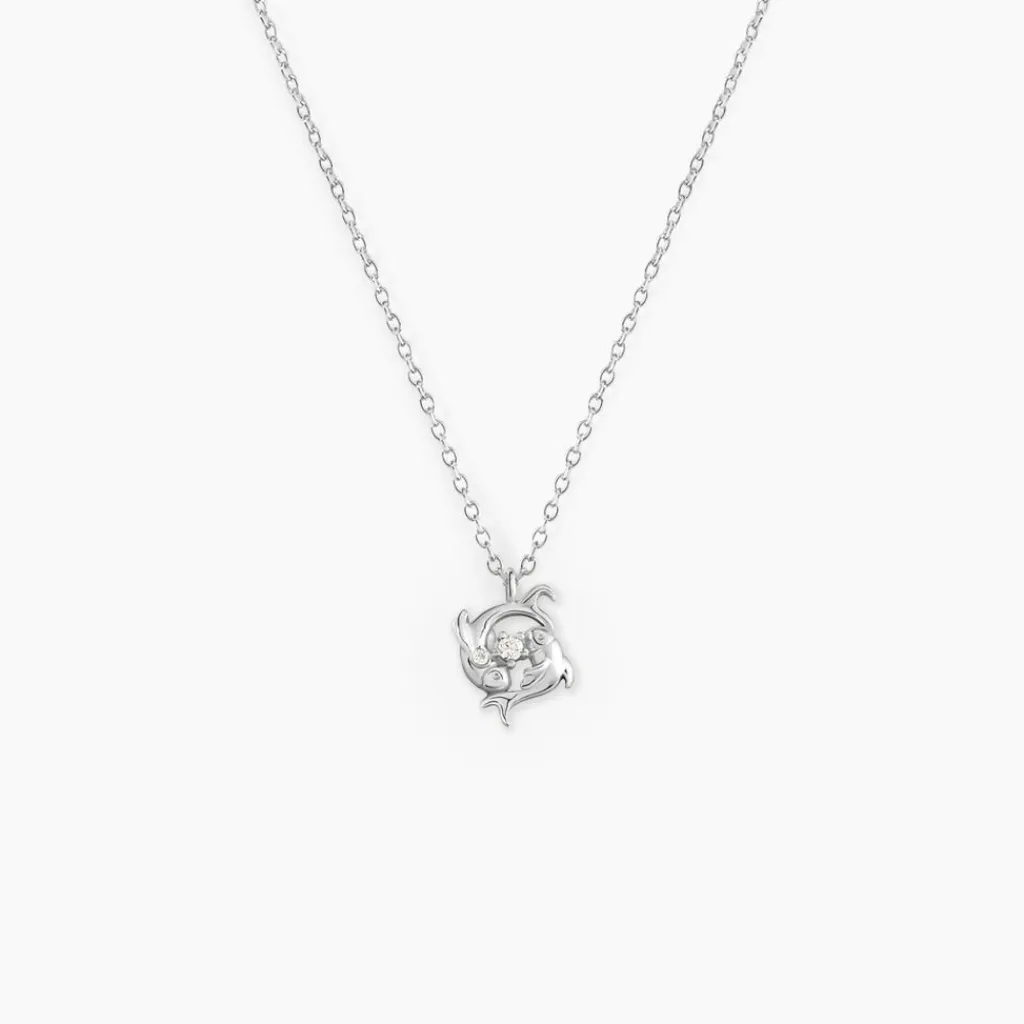 Collier Argent Blanc 925/1000 Signe Astrologique Poisson Oxydes De Zirconium Maille Forçat 38+3cm