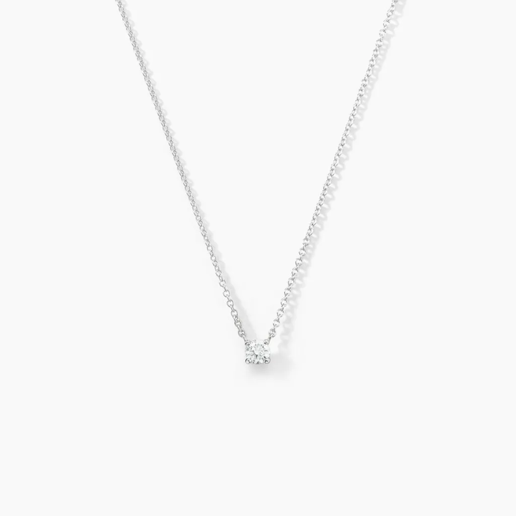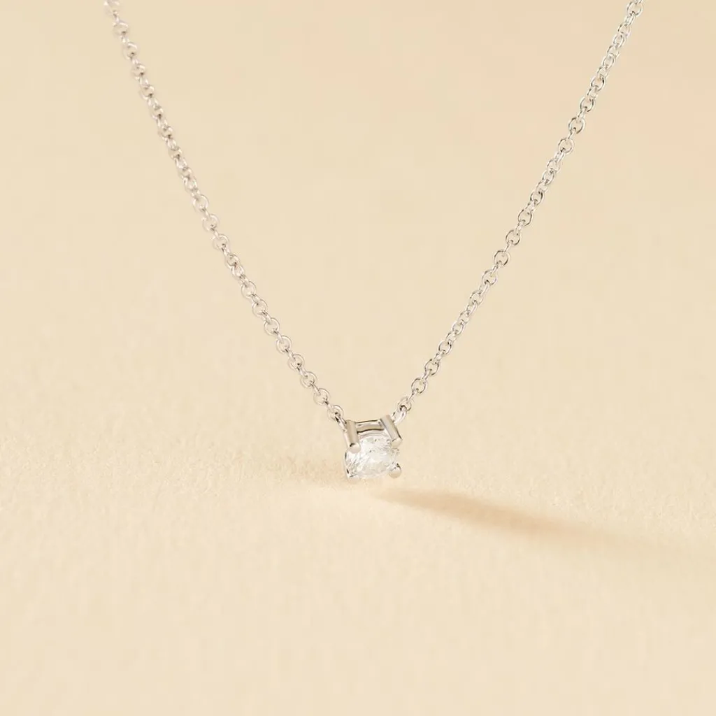 Collier Or Blanc 375/1000 Solitaire Diamant 0.10cts 42cm
