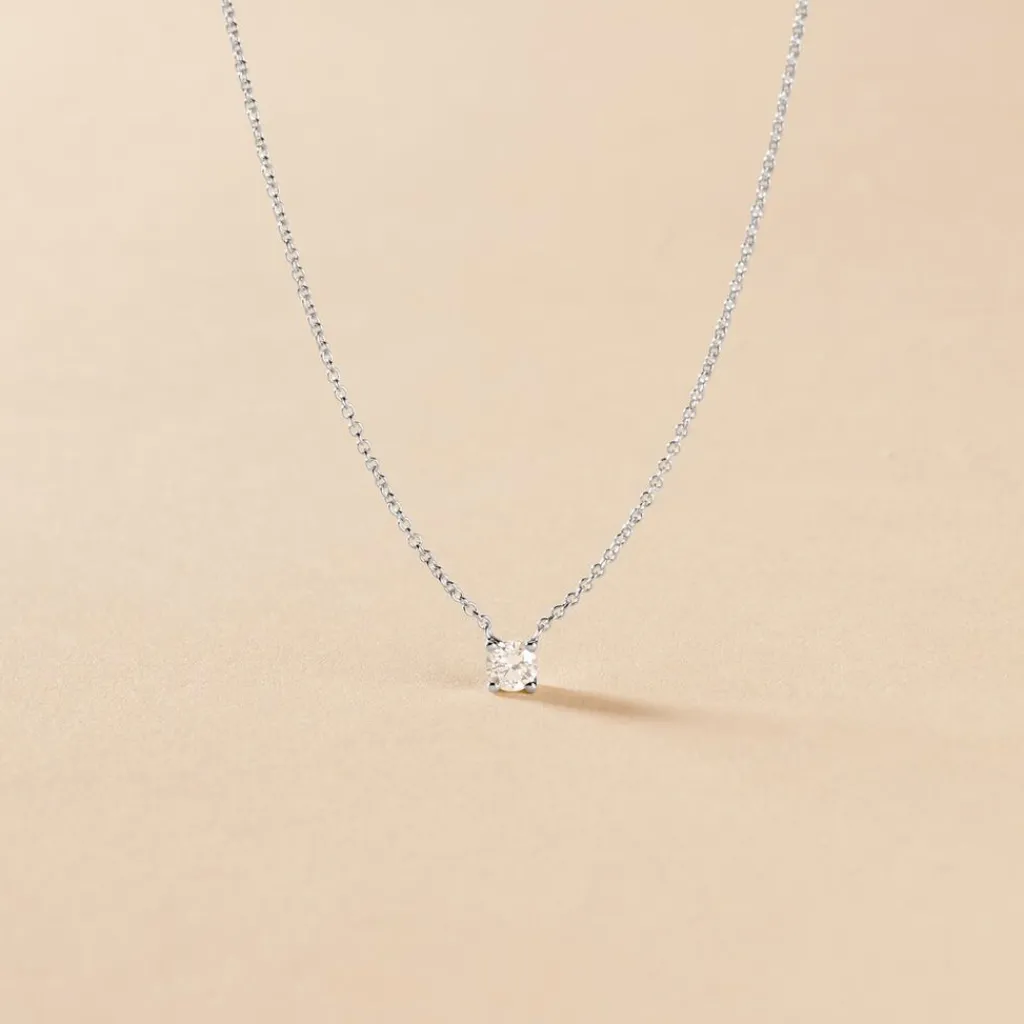 Collier Or Blanc 375/1000 Solitaire Diamant 0.15cts 42cm
