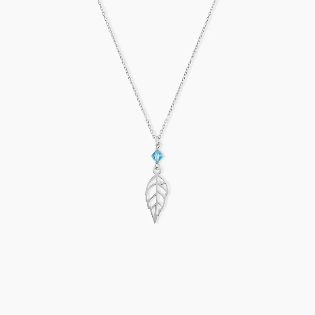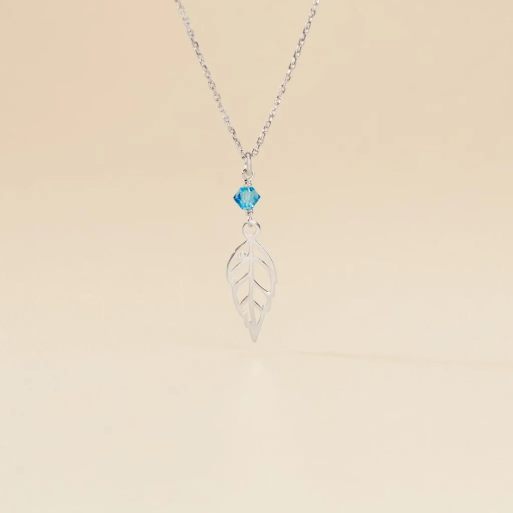 Collier Argent Blanc 925/1000 Feuille Pierres Bleues Synthetiques Maille Forçat 38cm