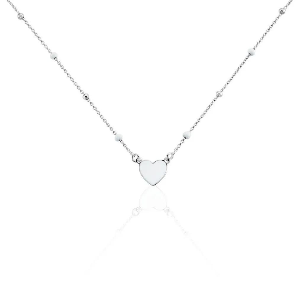 Collier Argent Blanc 925/1000 C艙ur Email Blanc Maille Jaseron 45cm