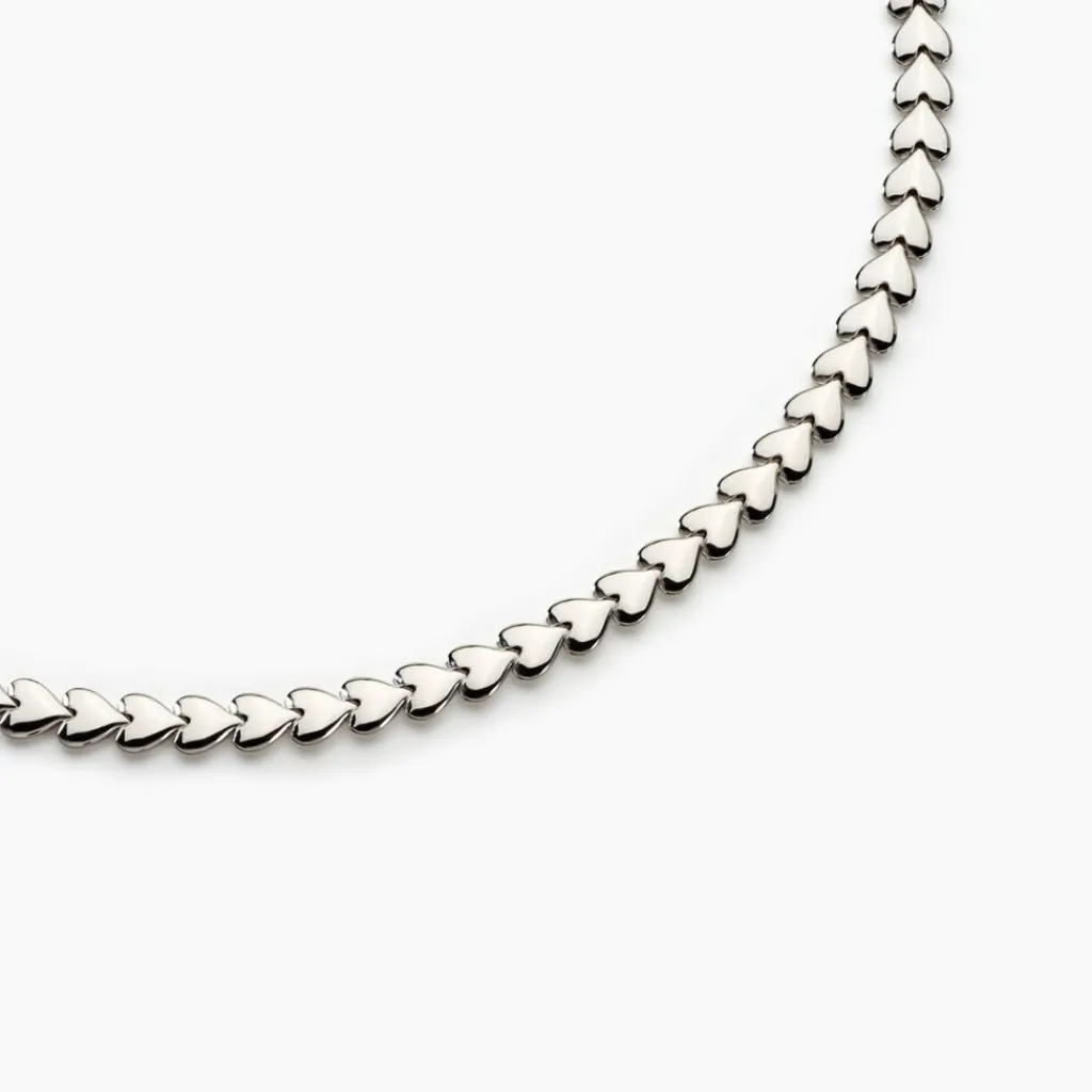 Collier Argent Blanc 925/1000 Maille C艙urs Largeur 5mm 42+3cm