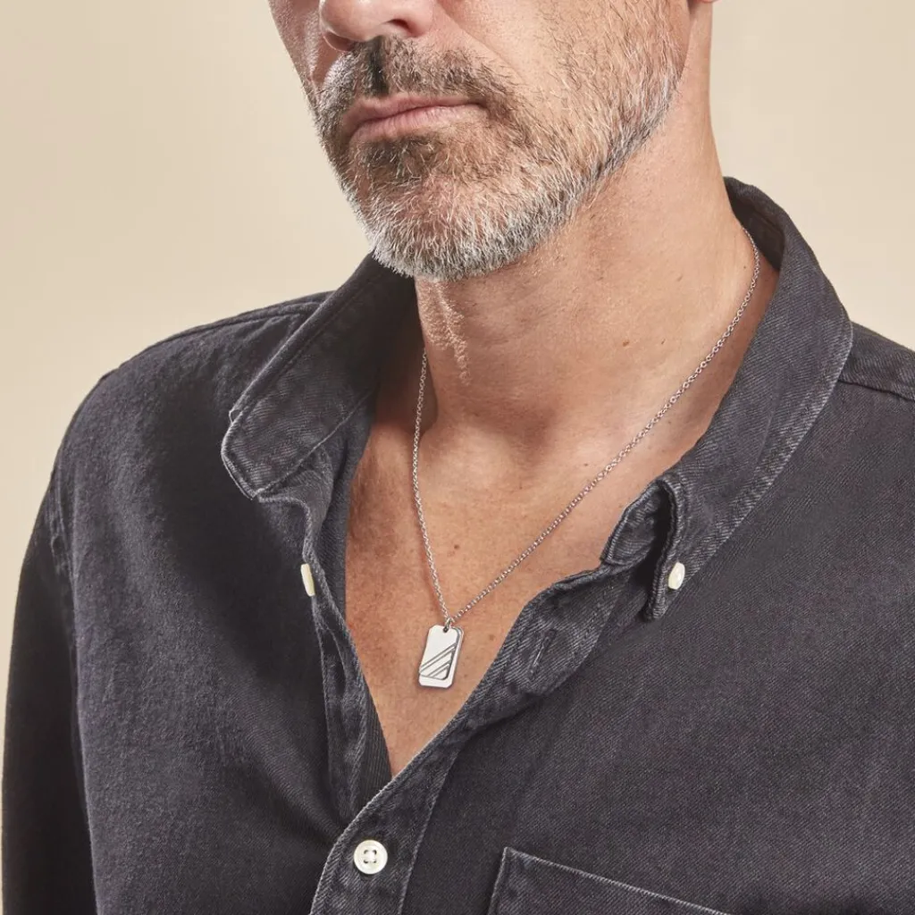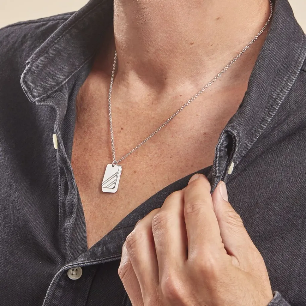 Collier Argent Blanc 925/1000 Double Plaques Maille Forcat 50cm