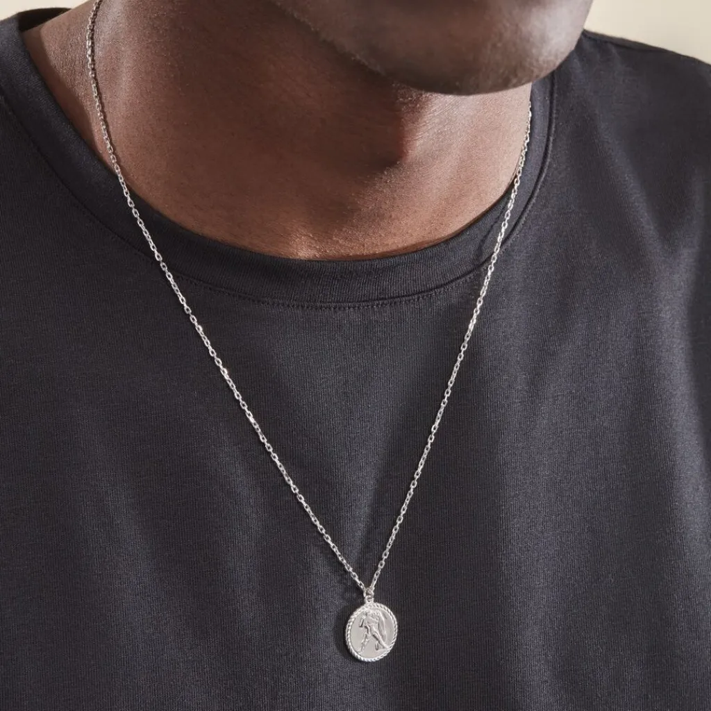 Collier Argent Blanc 925/1000 Pastille Signe Du Zodiaque Verseau Maille Forcat 55cm