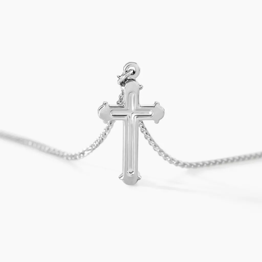 Collier Argent Blanc 925/1000 Croix Maille Spiga 55cm