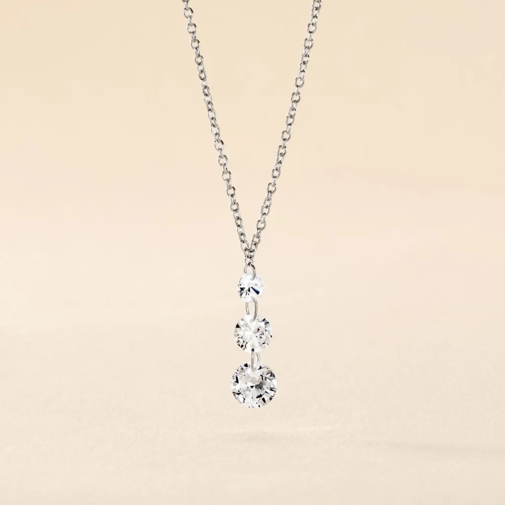 Collier Argent 925/1000 constantin 3 Gouttes Oxydes De Zirconium Percés Maille Forçat 45cm