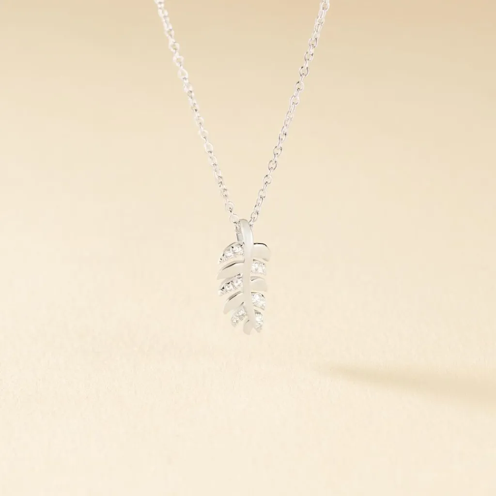 Collier Argent 925/1000 jade Forme Feuille Avec Oxyes De Zirconium 45cm