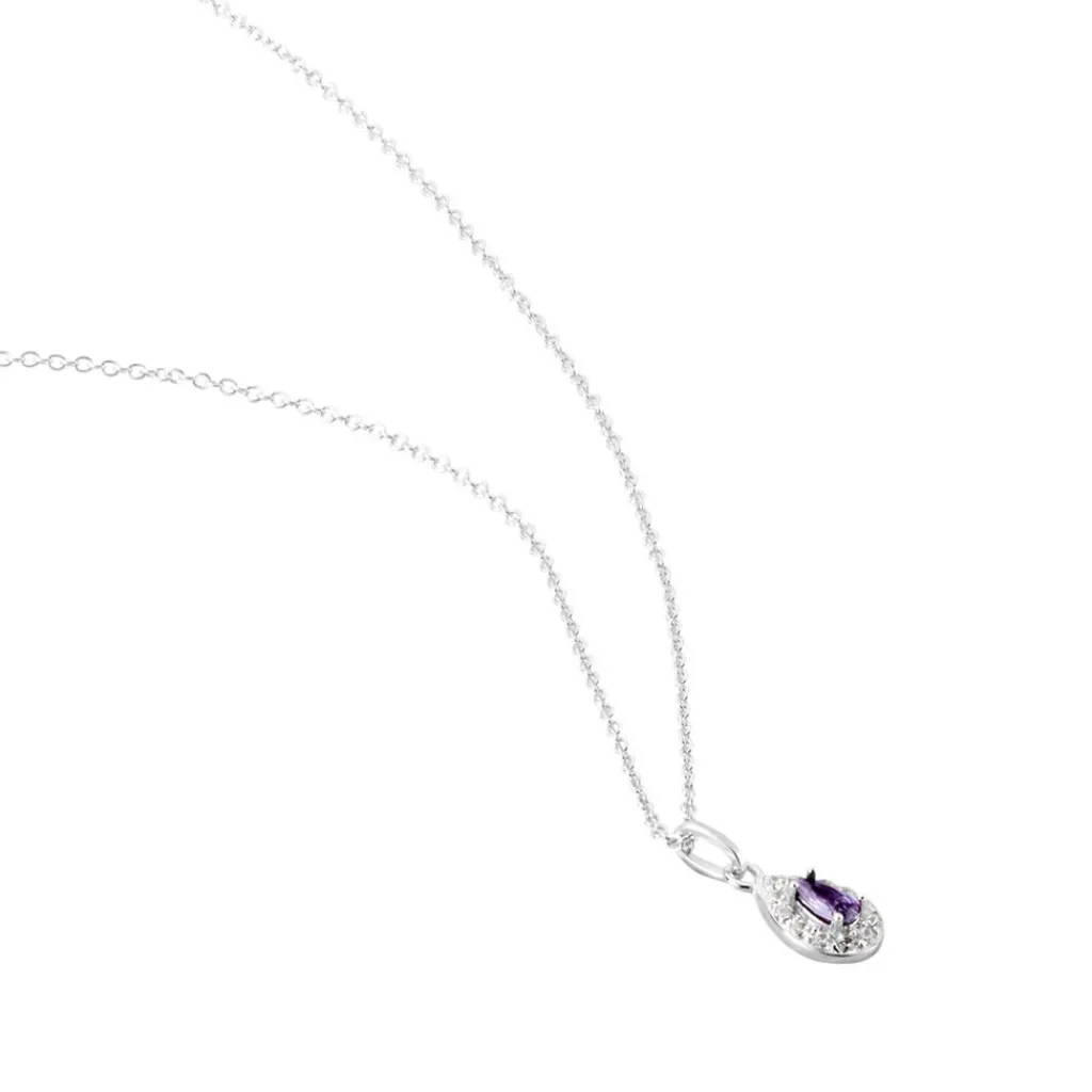 Collier Argent 925/1000 tania Goutte Violette Entourage Sertis Griffes Oxydes De Zirconium Maille Forçat 45cm