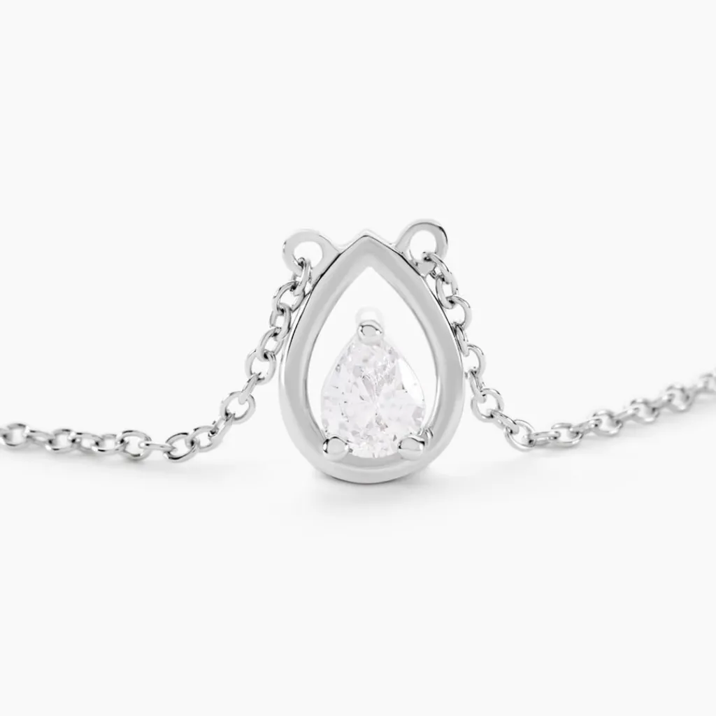 Collier Argent 925/1000 temusio Goutte Sertis Griffes 1 Oxyde De Zirconium Maille Forcat 45cm