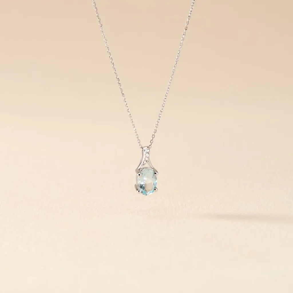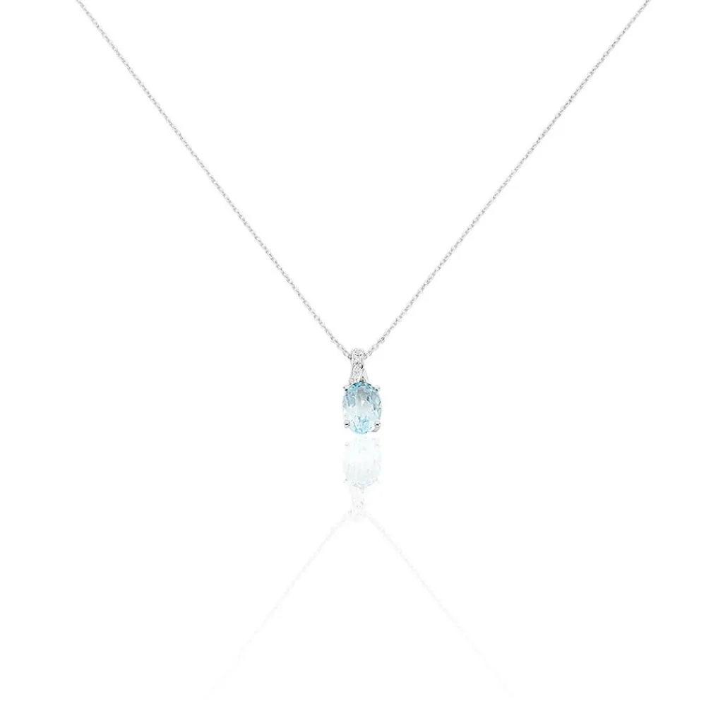 Collier Or Blanc 375/1000 Topaze Ovale Et Oxydes De Zirconium 42cm
