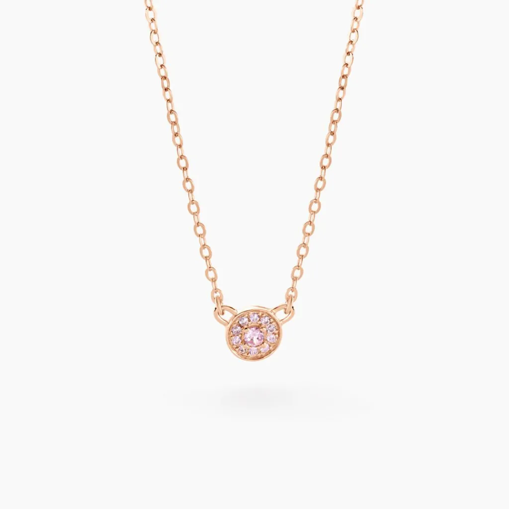 Collier Argent Rose 925/1000 Puce Pavage Oxydes De Zirconium Roses 45cm