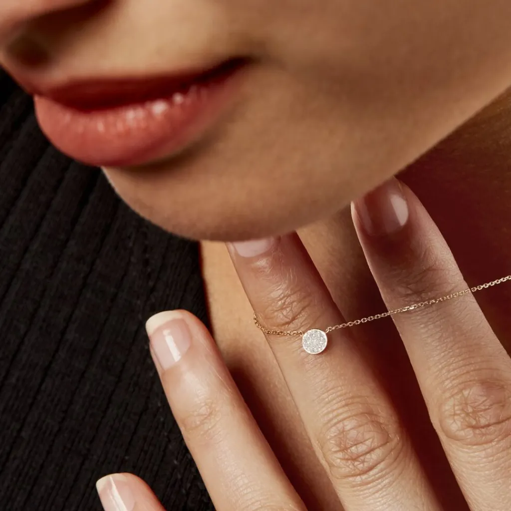 Collier Or Jaune 375/1000 Pastille Glitter Argente Maille Jaseron 40+2cm