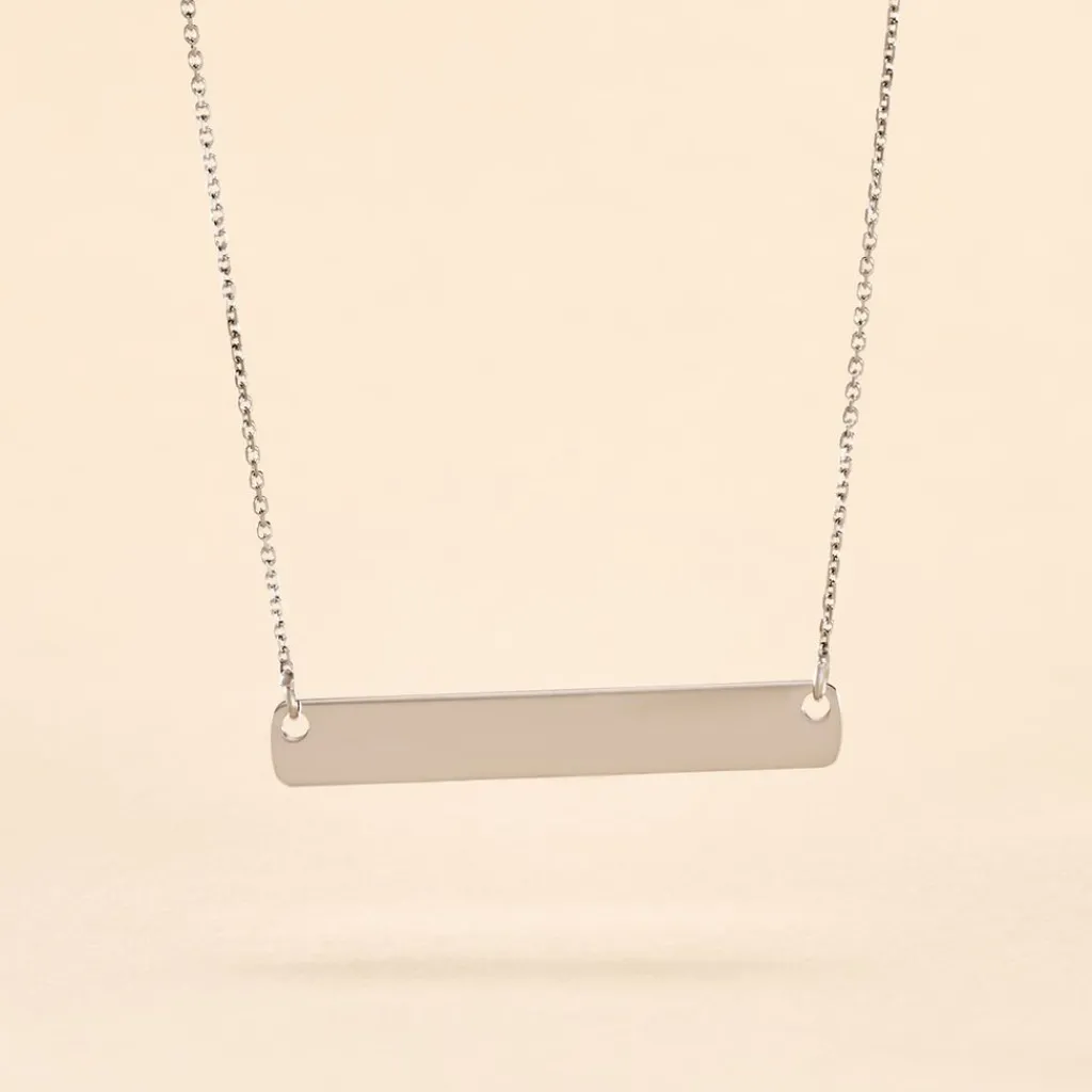 Collier Or Blanc 375/1000 Plaque Rectangle Gravable Maille Jaseron 42cm