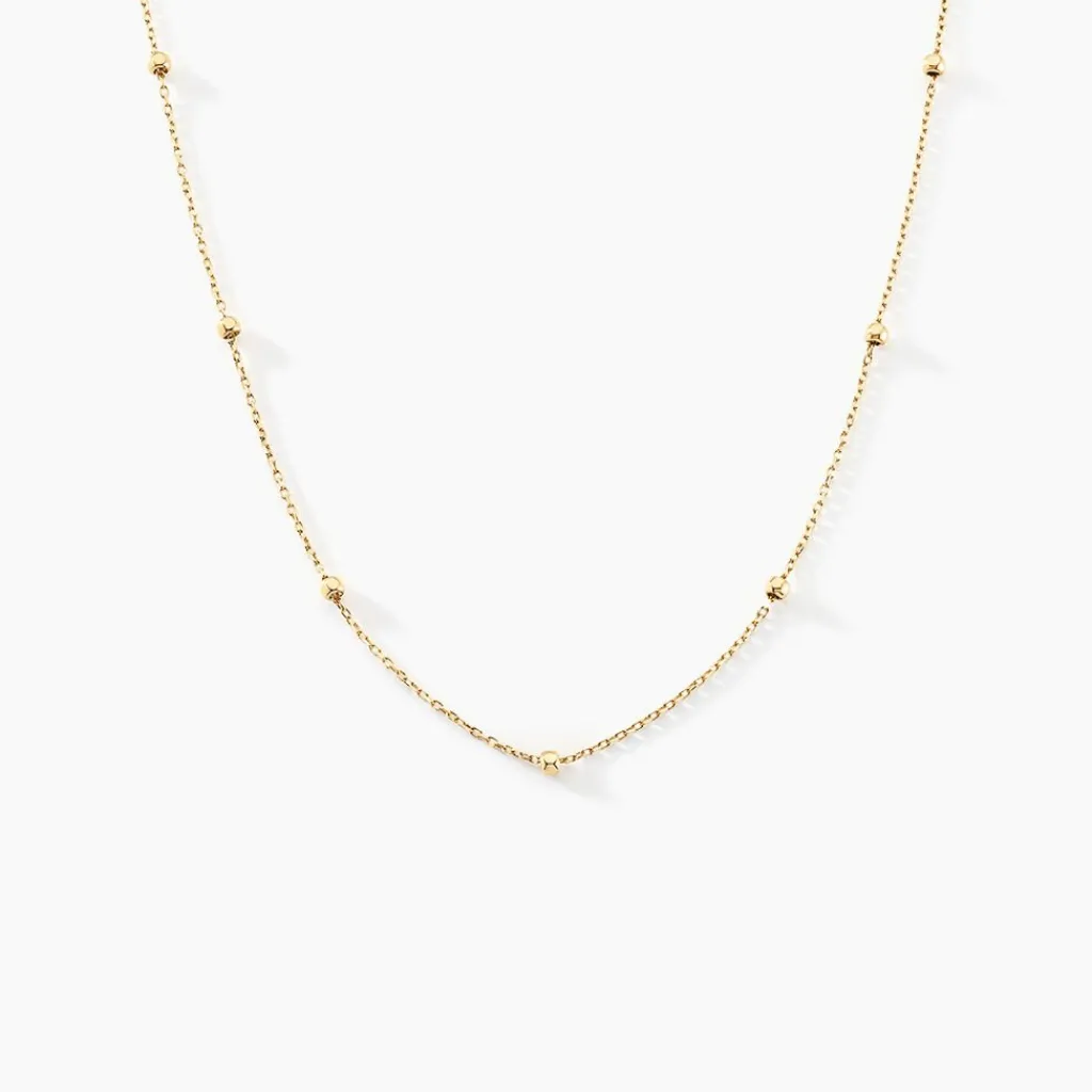 Collier Or Jaune 375/1000 Petites Boules Maille Forcat 36+2cm