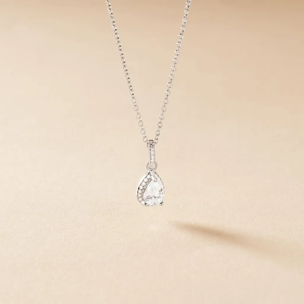 Collier Argent 925/1000 briony Forme Goutte Oxyde Central Et Pavage Oxydes De Zirconium 45cm