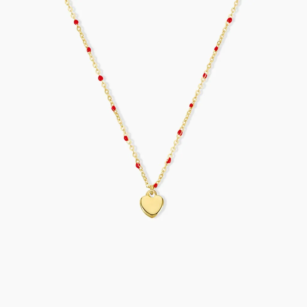 Collier Court Argent Jaune 925/1000 C艙ur Et Boules Email Rouge Maille Forcat 35+3Cm