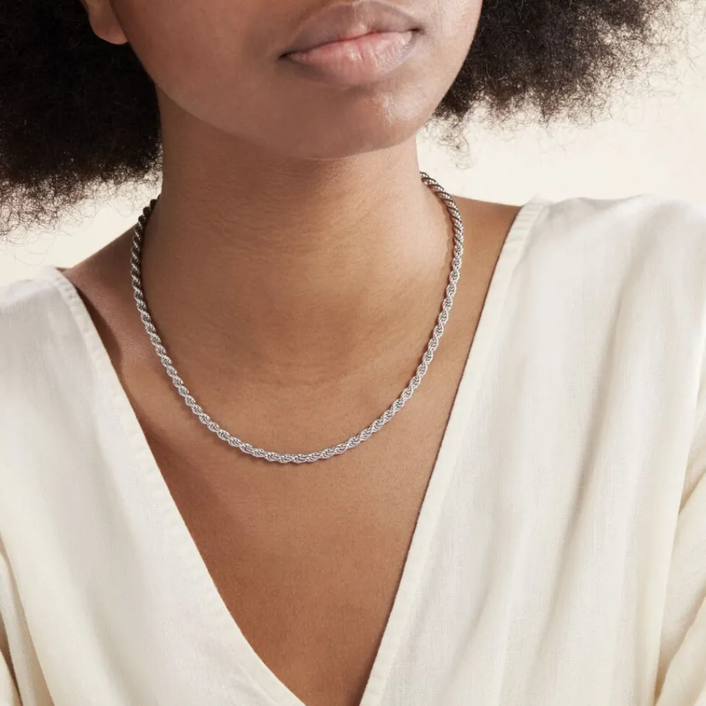 Collier Argent Blanc 925/1000 Maille Corde 4mm 45cm