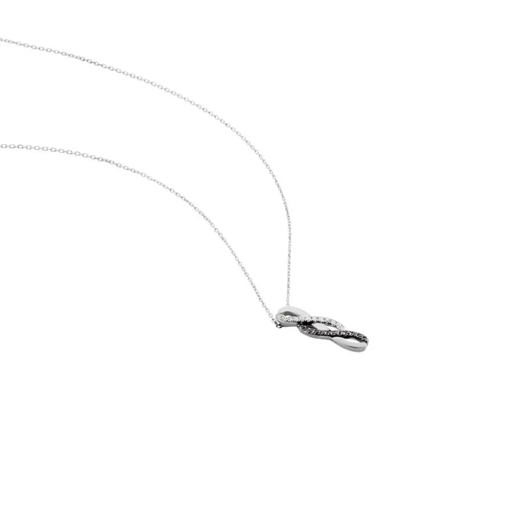 Collier Or Blanc 375/1000 Forme Vague Double Diamants Blancs Et Noirs 42cm