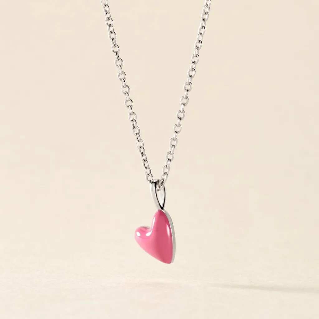 Collier Argent Blanc 925/1000 C艙ur émail Rose Maille Jaseron 42+3cm